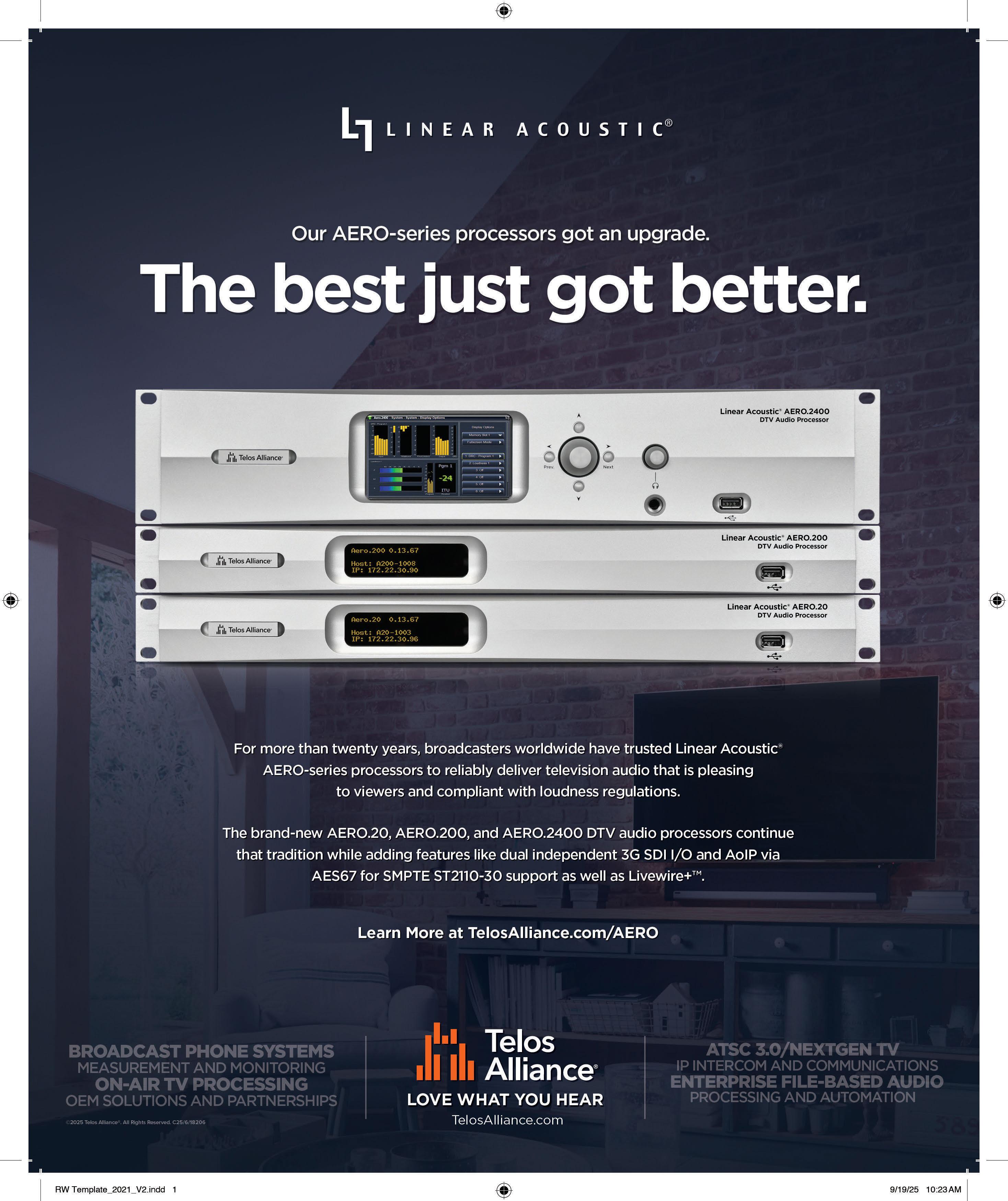 “Moving to SMPTE 2110 and cloud workflows requires not only new infrastructure but also a new way of thinking about system design and signal flow,” Weiss says. “The biggest challenge isn’t the hardware, but the complexity of integrating diverse platforms, evolving standards and unique client requirements. Success depends on having people who can bridge the gap between IT and broadcast, ensuring that the technology delivers the flexibility that broadcasters expect without compromising reliability.”