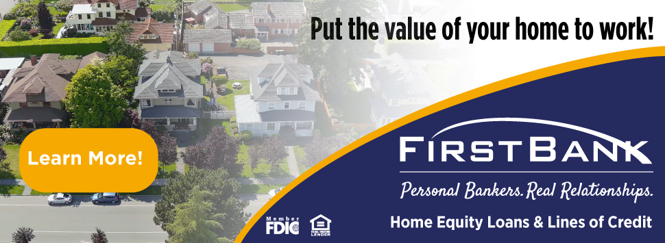 Tap into your home’s value! Click here to get in touch with a First Bank representative about Home Equity Loans and Home Equity Lines of Credit.