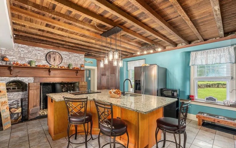 Beyond the main residence, the property offers a wealth of lifestyle features: a a stone bank barn, springhouse, firepit, and even a basketball court that could be converted to a tennis or pickleball court.