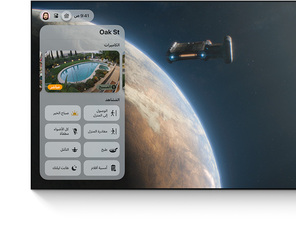 كل ما في المنزل تحت أمرك. مع مركز التحكم الذكي، ستجد جميع اكسسواراتك المتصلة في مكان واحد. فجهاز Apple TV 4K يعمل بسلاسة مع الاكسسوارات التي تدعم HomeKit، ويتيح لك ربط المزيد من الأجهزة عبر منصات أكثر من أي وقت باستخدام Matter14، وهو معيار الاتصال للمنازل الذكية. وبفضل إمكانية الوصول عن بُعد، تستطيع التحكم في منزلك الذكي من خلال تطبيق المنزل، أينما كنت وعلى أجهزة Apple الأخرى.