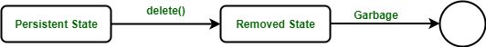 - When a persistent object is deleted using session.delete(), it is removed from both the session and the database.