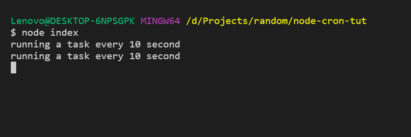 Now run the file using node index.js, you will see the output like below: