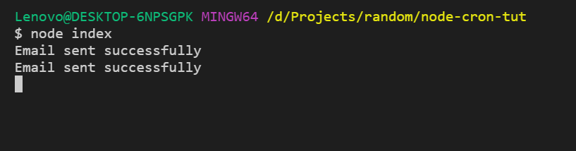Example: This example uses node-cron to send an email every minute with Nodemailer, automatically triggering the sendMail() function.