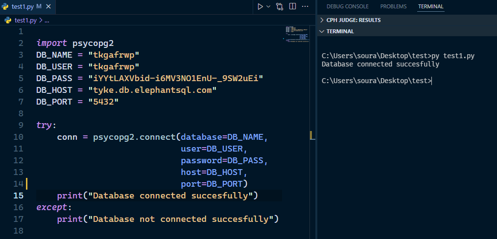 Example 1: Program to establish a connection between python program and a PostgreSQL database.