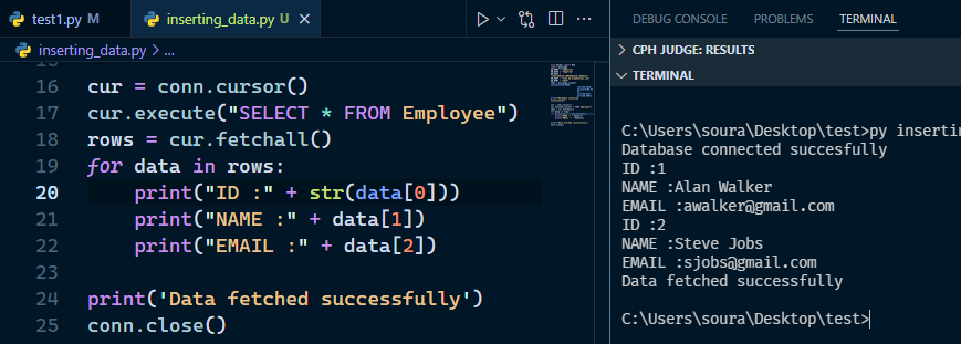 Example 4: Fetching the data from the database and displaying it into the terminal.