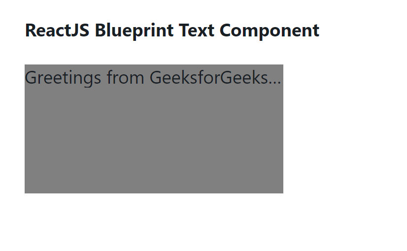 BlueprintJS is a React-based UI toolkit for the web. This library is very optimized and popular for building interfaces that are complex data-dense for desktop applications. Text Component provides a way for users to adds accessible overflow behavior to a line of text. We can use the following approach in ReactJS to use the ReactJS Blueprint Text Component.