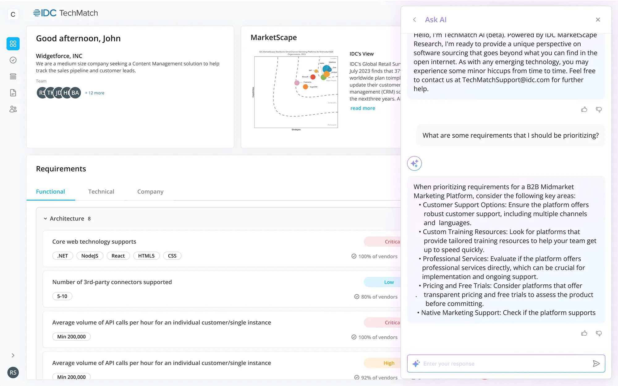 Get a firsthand look at how IDC TechMatch empowers your team to evaluate, compare, and select IT vendors with confidence and speed.