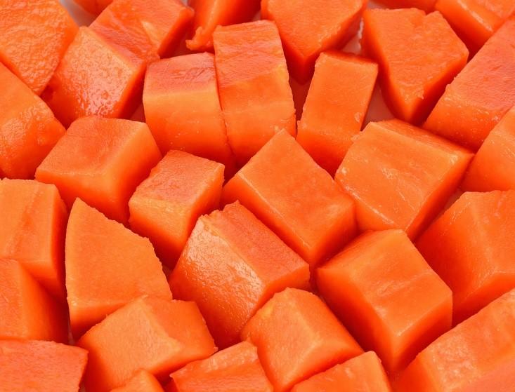 パパイヤはビタミンCやカロテン、食物繊維を豊富に含んでいる。食後のデザートにいただくとさっぱりするので、1切れずつ継続的に食べていくのもおすすめだ。たくさん購入したら冷凍保存して、デザートや料理に活用しよう。
